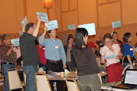 The speeches were very moving and the part where we got to interject our voices into the program was empowering. All in all a very positive turnout but I can't see this Council allowing any of this. They don't care at all about what the people care about. They will ignore this entirely or maybe they will co-opt some of the language or pehaps even some of the inconsequential aspects of the RULE agenda all the while making sure there is no new day in Emeryville. These Council members have been in power entirely too long. I hate to be such a downer but this is how I see it. I hope RULE has a plan for how to move forward without the Council.
